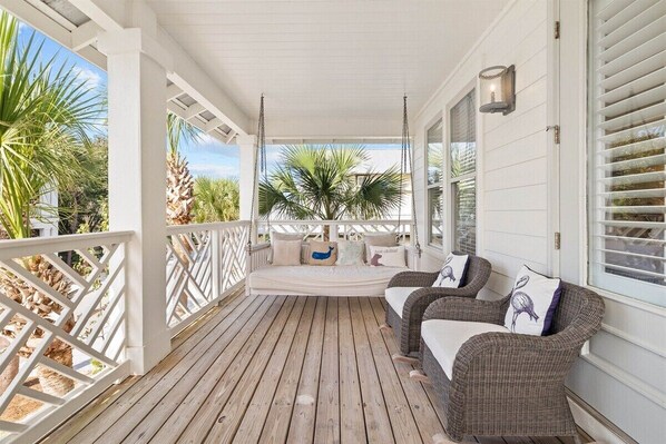 - Your front porch has loungers and an extra-large porch swing.