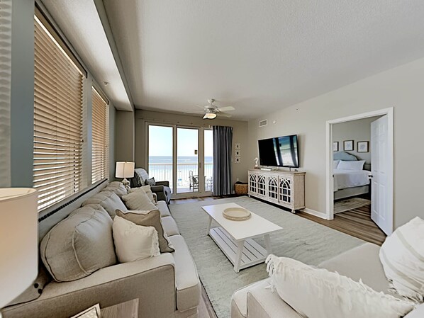 You’ll find plenty of room for six beach-loving guests at Seychelles 301, in addition to two full bathrooms and extra accommodations in the living room. This condo rental underwent a full remodel in early 2020 with luxury renovations from top to bottom. This includes all new flooring, furniture, a brand-new kitchen, memory foam mattresses, and Smart TVs in each room. The wraparound balcony in the living room will draw you in at once, as it is the perfect place to start and end your day. You can also enjoy those same views from the master suite, with additional access to the balcony whenever you please. The kitchen comes outfitted with granite counters and both black and stainless-steel appliances, along with plenty of room to store all of your groceries for the week.