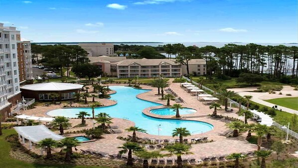 På stranden og med utendørsbasseng og beliggenhet nær Pier Park