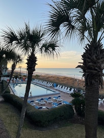 På en privat strand med utendørsbasseng, nær Shipwreck Island vannpark