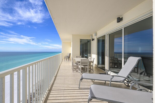 Dette er virkelig en bemerkelsesverdig perle på verdens vakreste strender. Hvis du er ute etter ultimate luksus, er det en-romslig, tre soverom, tre bad leilighet i et svært ønskelig område av Panama City Beach. Luksus utstråler fra hvert hjørne av denne leiligheten. Det er over 2 200 kvadratmeter luksus fasiliteter komplett med tre king size-roms suiter, hver med eget bad. Stort badekar, stort mester bad m / dusjkabinett, og stort walk-in closet like utenfor det store master bedroom. Peis for å nyte på de kaldere månedene, nye rustfritt stål apparater i det store lager kjøkken med øy. Stort spiseplass, frokostområde og frokostbar. 5 totalt kabel-TV i eiendom, inkludert 4 store flatskjermbilder, høyhastighets internett, hjemmekinoanlegg som spiller i alle rom i eiendommen, inkludert den romslige balkongen og DVD-spillere i alle rom! Designer høy kvalitet møbler, den beste utsikten på stranden, og en ekstremt stor wrap-around balkong med flott utsikt øst og vest vil gj��re for en ferie du ikke snart vil glemme. Denne smakfullt innredede leiligheten er i perfekt stand; Du vil ikke finne en renere leilighet på stranden. Leiligheten ligger inne i et av de mest private og eksklusive kompleksene på stranden, med kun to enheter per etasje, og kun 28 i hele bygningen. Dekket og gated reservert parkeringsplass inkludert! Ikke bare gå på ferie, gå på en privat ferie med fantastisk utsikt omgitt av luksus.