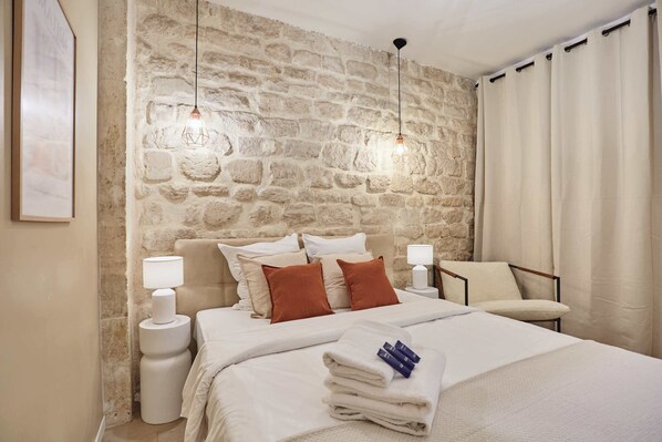 Denne leiligheten ligger i sentrum i Paris. Et par kulturelle høydepunkter er Louvre og Garnier operahus, men hvis det er shopping som står på planen, kan du ta turen til Rue Cler og Champs-Élysées. Du kan se om det skjer noe kult på Roland Garros stadion, og hvis du har tid, bør du også få med deg Luxembourg-hagen, en svært populær attraksjon. Se vår reiseguide til Paris