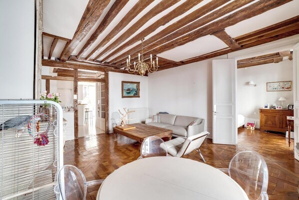 Nestled in the heart of the Tuileries, this charming apartment features 200-year-old wooden floors and a rustic-modern elegance. The neighborhood offers iconic landmarks such as the Louvre and the Tuileries Garden just steps away. Enjoy the best restaurants, shops, and cultural experiences right at your doorstep. The apartment includes two bedrooms, a cozy living space, a fully equipped kitchen, and a modern bathroom, making it an ideal base for exploring the city.
