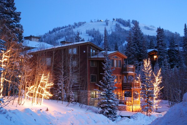 Utsikt mot fjell- og skiløypene fra stue, spisestue, kjøkken og romslig balkong med boblebad i "hjertet" i Upper Deer Valley's Silver Lake Village. Vi er omtrent en 3 minutters spasertur fra ski- og terrengsykkelutleieboliger ... og skiheisen (sykkel- og turgåerheisen om våren og sommeren) rett over gaten her i eksklusive Silver Lake Village. Enten det er ski, terrengsykling, rusle rundt i kunstgalleriene i Main St, nyte vår private boblebad i full størrelse eller ta gratis lokalbuss til skiområdet Old Town / Main Street / Park City ... 'sted å være'! ****