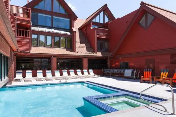 This unit has a view of the skating rink & there are many indoor and outdoor jacuzzis, an indoor/outdoor heated pool, gym, locker room with dry sauna and steam room, washer/dryers on the 3rd floor just down the hall. There is even an indoor jacuzzi right across the hall from the loft bedroom with a view of the ski mountain!
