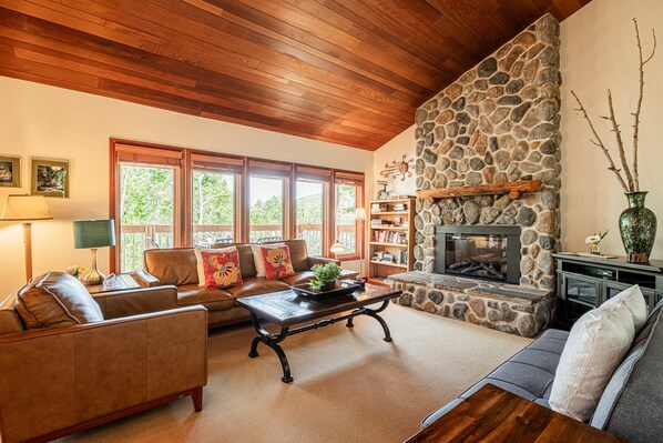 Stuen er virkelig et "flott rom" og tilbyr komfortable sitteplasser, en peis og en flatskjerm-TV med BluRay DVD, noe som gjør det til et fantastisk samlingsområde.