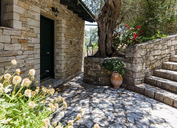 This vacation rental offers a private balcony, perfect for enjoying the outdoors. Additionally, guests have access to a shared garden and covered terrace.