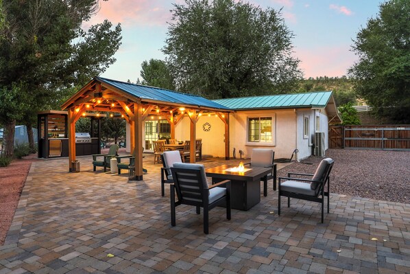Spectacular, immaculately clean family and pet-friendly home with a phenomenal shady backyard tucked away in a peaceful rural neighborhood minutes from Payson. The home is beautifully furnished and newly renovated with high-end touches throughout. It is even more darling in person than in its photos! It has a cozy feel and uses its space well. We enjoyed the hot tub on the patio and played games at the large dining room table. This was our first time travelling with our pets as pet-friendly and family-friendly properties with fenced-in yards that welcome multiple dogs are not easy to find. Our amazing experience here will be hard to match! Our 3 small dogs felt very welcome and safe in the securely fenced front yard with toys all around. We relaxed over morning coffee on the front porch while watching the beautiful horses and cow next door. Our teen boys loved exploring the creek and helping us grill in the huge backyard. They were excited the wi-fi supported their late-night gaming marathons. Bob, our host, was very responsive and welcoming. Highly recommend this property! We would absolutely choose to stay here again: 10 out of 10!