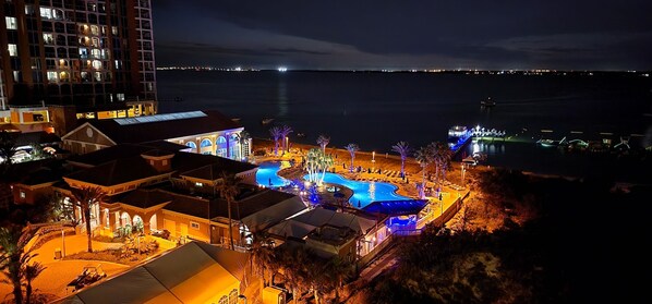 Dette 2-roms enhet i åttende etasje i Tower 2 har en unik beliggenhet, slik at du kan sitte på balkongen og beundre den fantastiske Portofino fyrverkeri hver fredag kveld kl. 21 om sommeren. Lytt til musikken som spilles av i livsstilsenteret, og Se aktiviteten i Adventure Water Park.