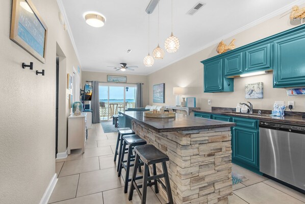 This condo was everything we needed and more. We could walk right downstairs to the water and relax in the morning then get in the van and drive 1 mile to the more public beach area. This condo was so close to so many delicious places to eat. I never return to a place - just because we always want to go somewhere new - but I would definitely return here!