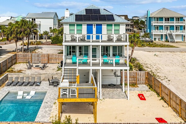 Welcome to Once Upon a Tide Pensacola! Completely renovated like new-build Resort Style furnished home with astounding views of Old River and the Gulf of Mexico. You may even catch the Blue Angels buzzing the beach or nearby bays! Enjoy the large in-ground heated pool with spa (extra fee applies for heating pool), then stroll steps down the street to access 2 miles of State Park Beach! We provide beach chairs and beach wagon to making the trip to the beach easy. Outside enjoy the private pool and spa, with ledge loungers and other outdoor furnishings, including a BBQ grill, firepit, corn hole and outdoor shower.