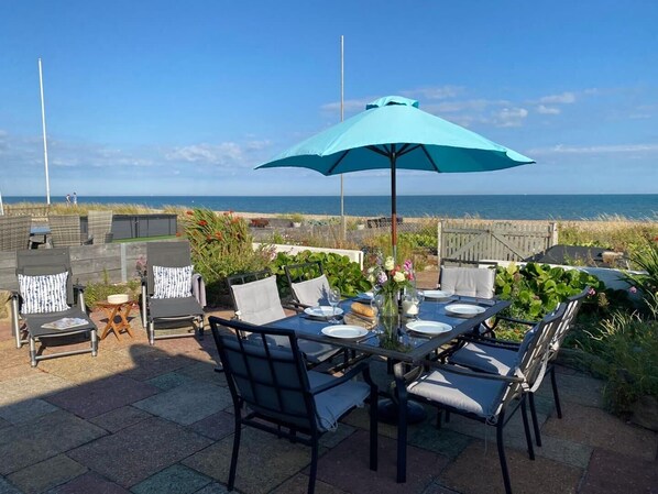 Direct Beach Access: Step straight onto the beach from your private beach garden, complete with outdoor furniture and a Weber kettle charcoal BBQ.