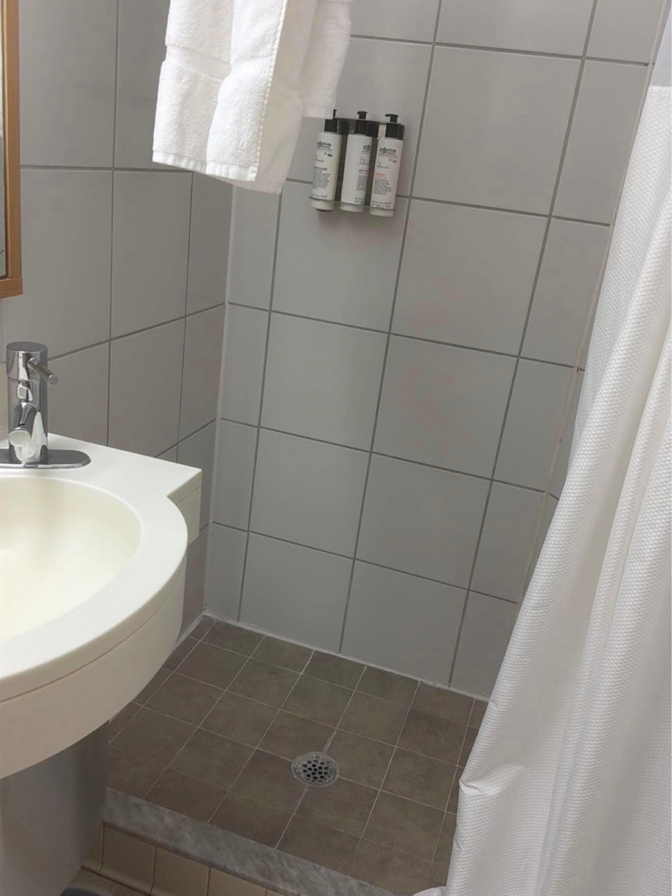 There was mold in the bathroom (see photos) and tiny shower. The toilet seat lid keep falling on my back while seated on the toilet seat.