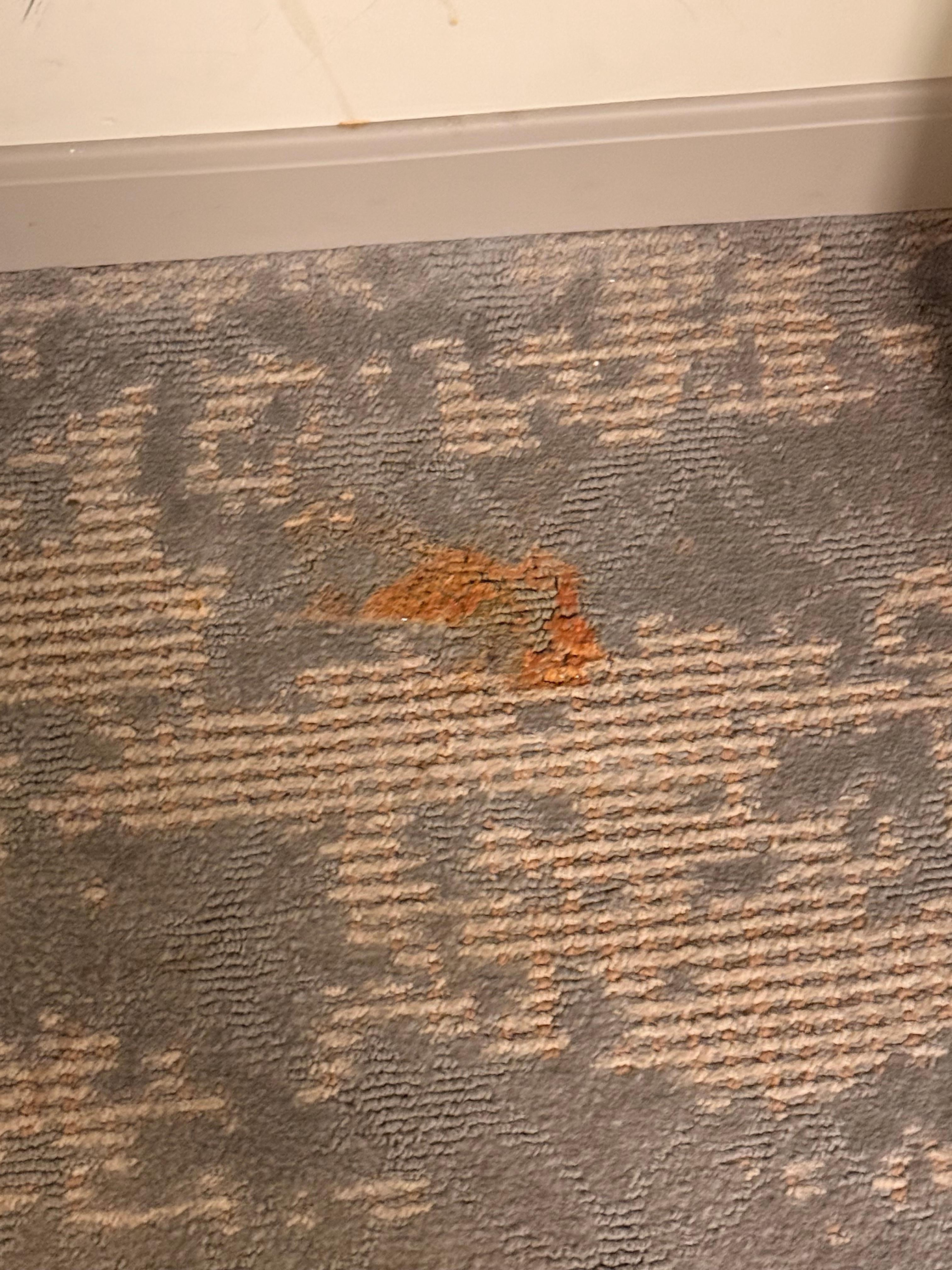 Stains on carpet multiple spots. Dirty room. Horrible restaurant.