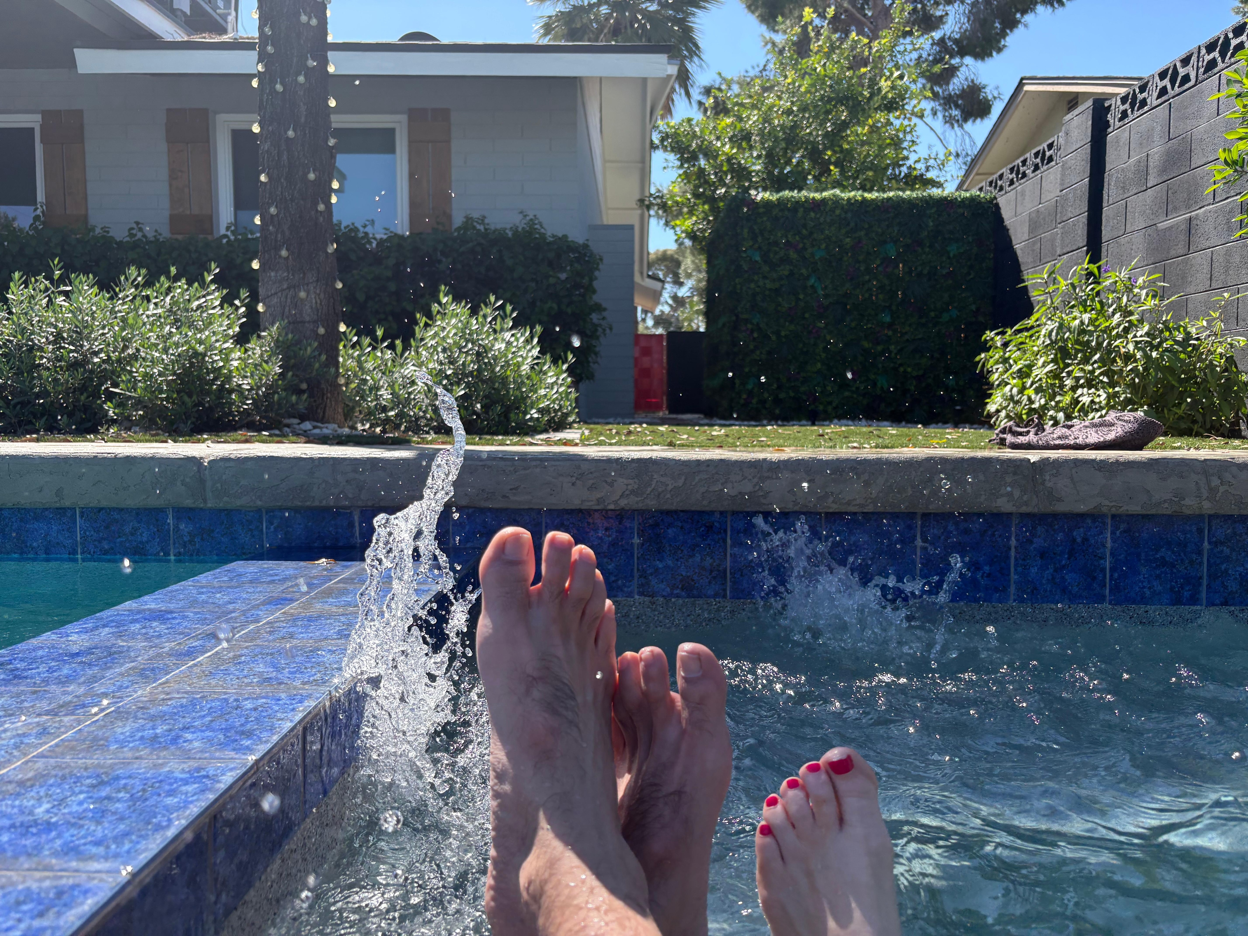 - Blue-tiled pool + hot tub
