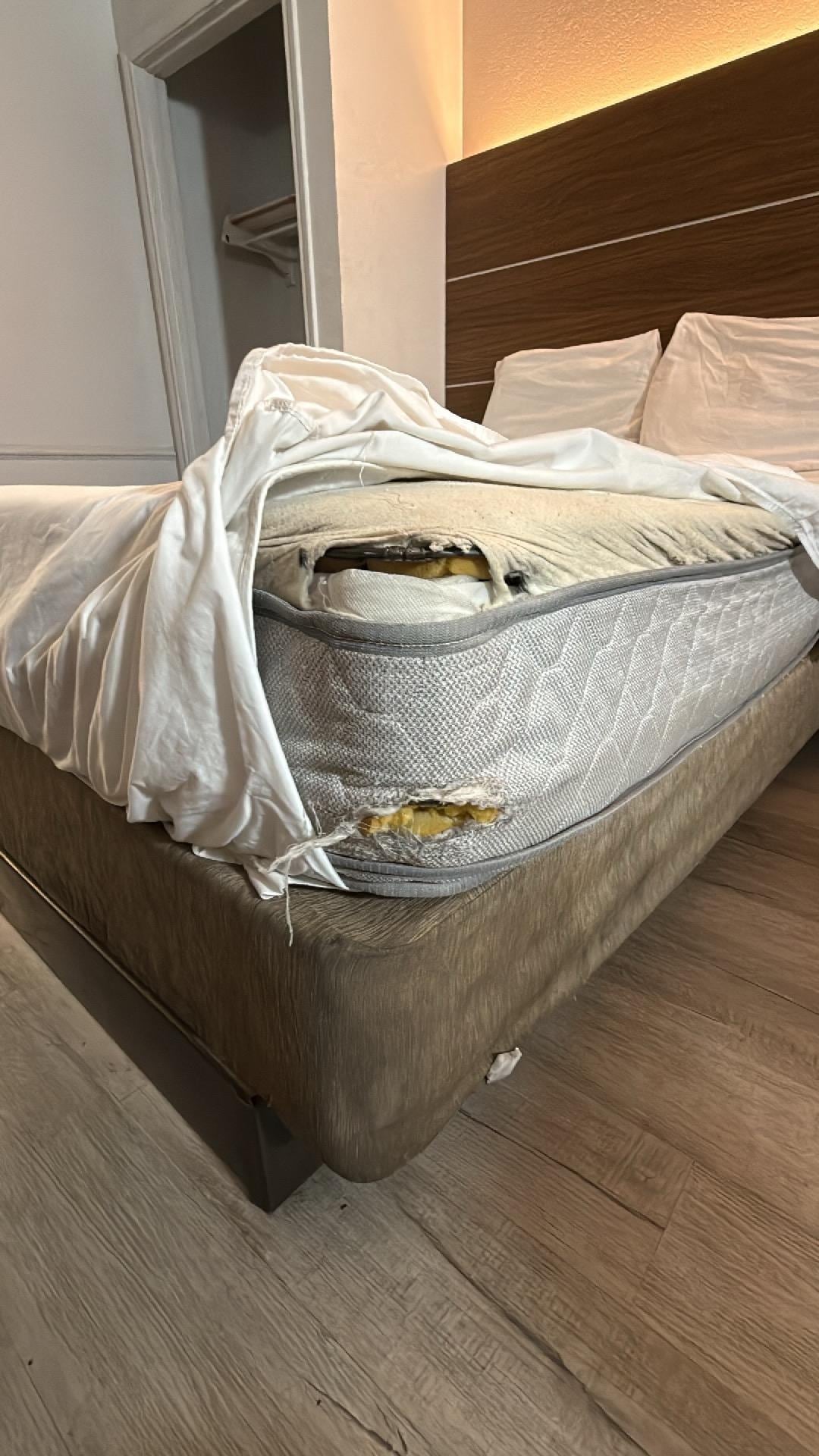 It was AWFUL. AVOID AVOID AVOID! Bugs, hair, blood, and other fluid stains were on the bedsheets and mattress. Mattresses were torn up. No pillow covers, no covers on the mattresses, cigarette burns and smell even with it being a non smoking room, and a mystery pair of pants were hidden between the mattress and box spring. Everything was dirty. Especially the bathroom. No towels. Shredded mattresses with visible stuffing and metal. Check my google review, the photos are insane. Front desk only said “if it isn’t good enough for you, I’ll move you to another room”— lots of sketchy activities going on outside. It’s DISGUSTING and shouldn’t be running any form of business. Zero stars. I doubt any health inspector has been there in ages.