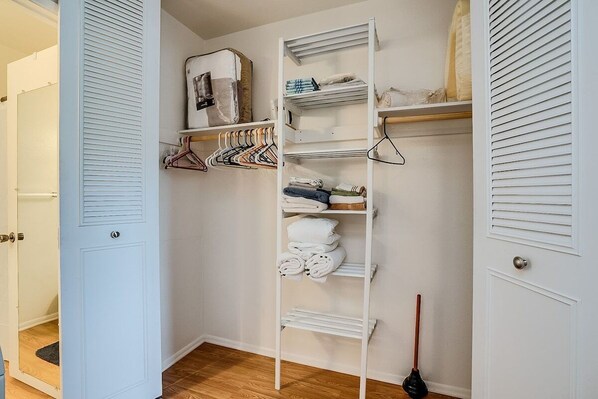 Det smakfulle soverommet har en komfortabel queen size-seng, god lagringsplass og en smart-TV. En luftmadrass og sofa er tilgjengelig for ekstra gjester. Det komplette badet, som er festet til hallen, gir en badekar / dusj-kombinasjon. En vaskemaskin og tørketrommel er tilgjengelig for enkelhets skyld.