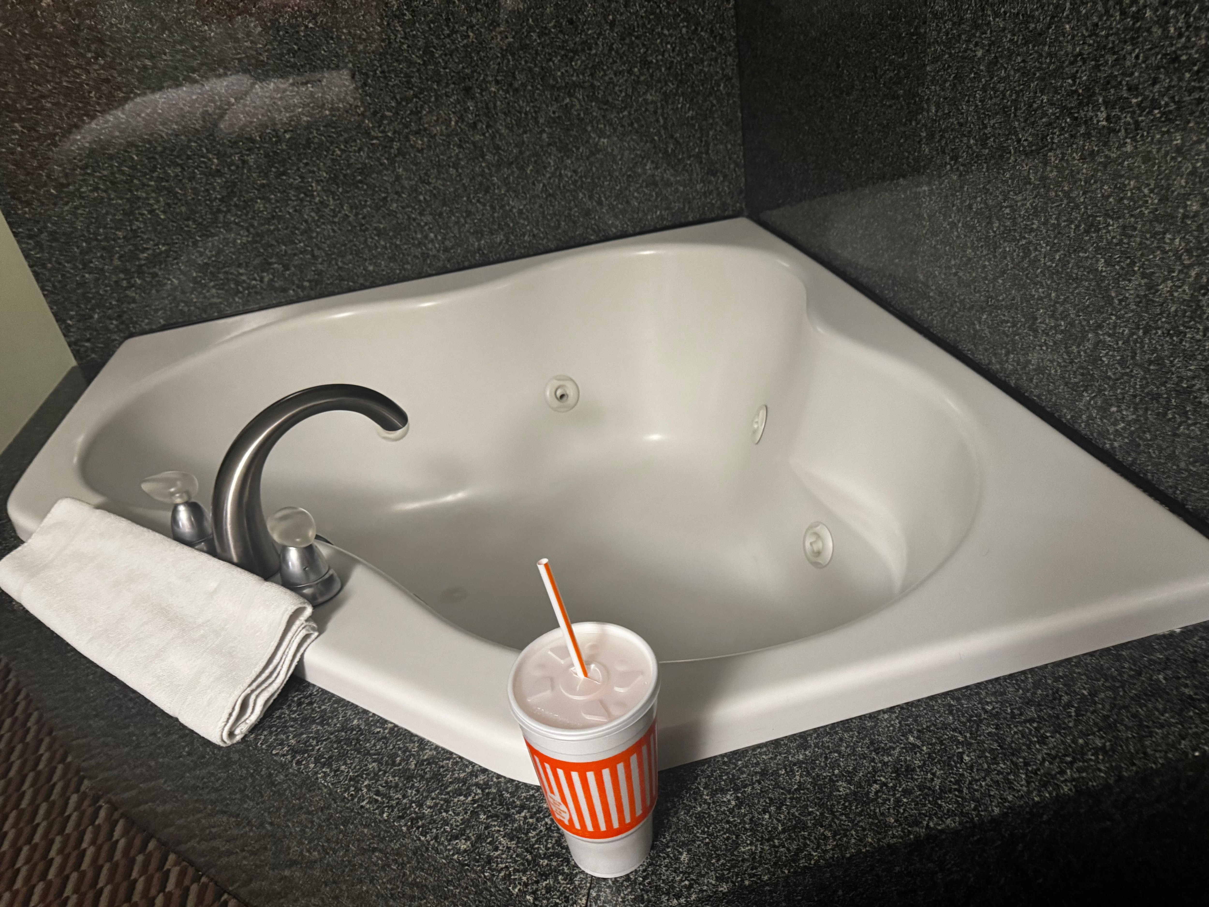 Staff was extremely friendly and apologetic!!! They promptly moved us to another room, also with a jetted tub. Was too scared to use it. Will say the bathroom had a little bit of a funny smell as well in the morning. The room itself was very clean and bed was comfortable. Didn’t get to use the pool but it was beautiful and clean!
