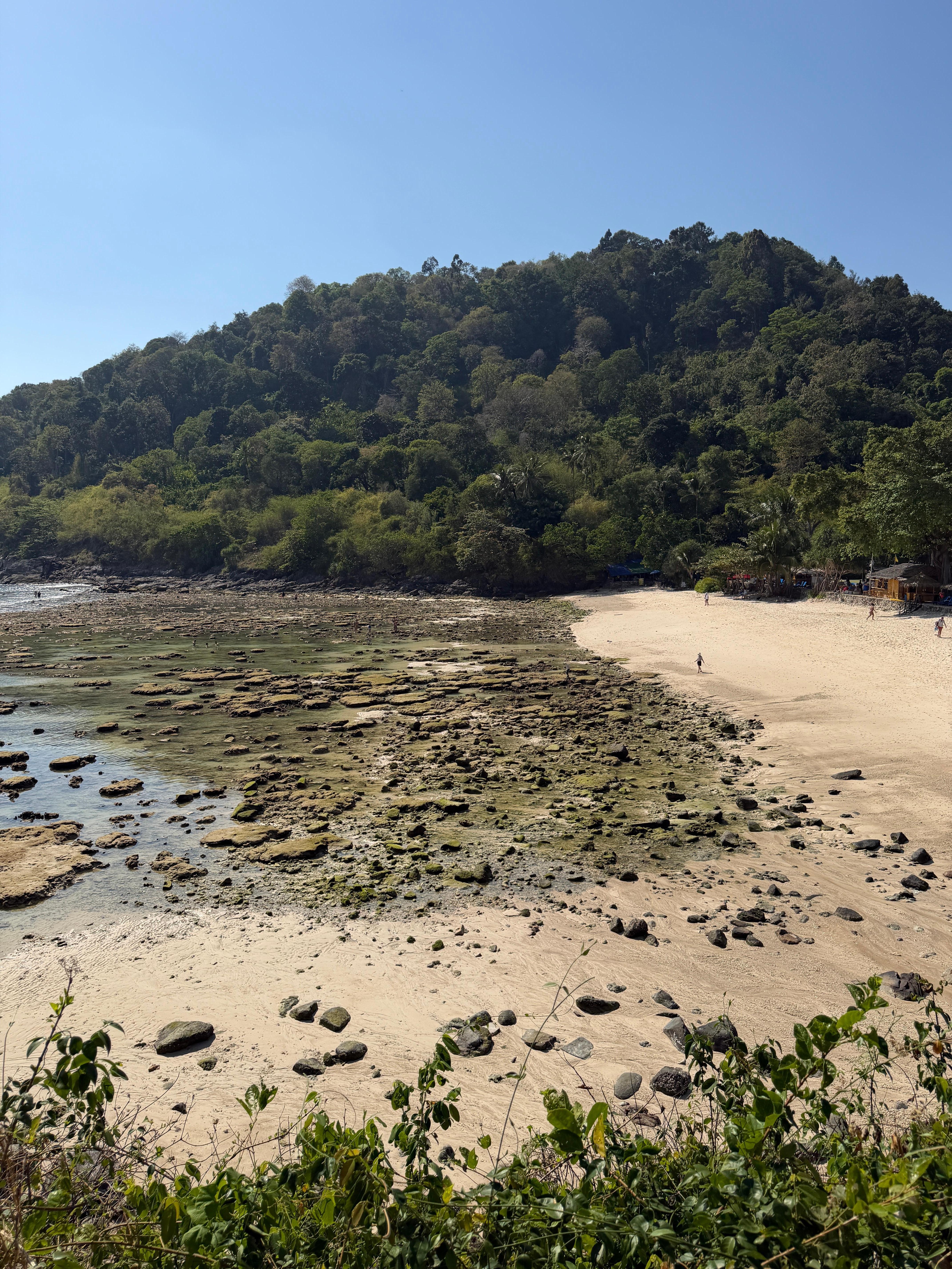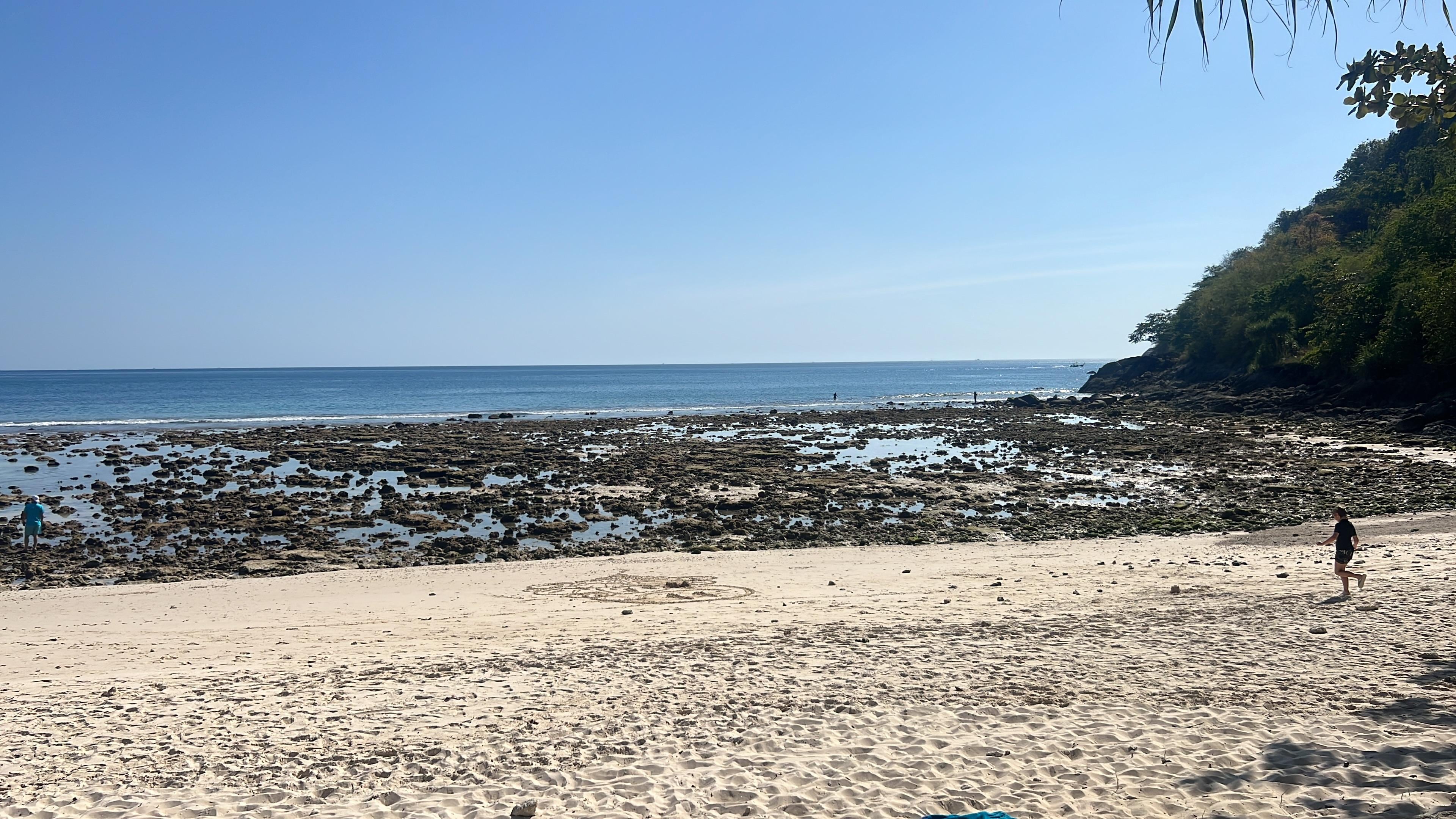 Vi fornøyd med oppholdet, men nå lavvanne kom var det mye stein på standen. Ikke så fristende som med høyvann. Vi valgte derfor å dra til stranden patong by.