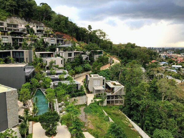 Dette totalt 115 kvm store private hjemmet ligger i den vakre åssiden av Kamala-stranden, 1 km fra den berømte turistattraksjonen som kalles Phuket Fantasea, og 500 m lenger til sjøen. Denne enheten har en eksepsjonell beliggenhet av flere grunner. Den er omgitt av regnskogen i dalen, fjell, fosser og tropiske planter. Utover den rene luften, den uerstattelige roen og den avslappende følelsen dette stedet gir deg, beriker hverdagen din av utsikten og lydene fra syngende fugler, brummende fugler, papegøyer, ørn, chipmunks og vakre sommerfugler, og du kan se den sjeldne ildfluen (lynfeil) rundt. Heldigvis ligger dette stedet over en naturlig vannkilde, så vanntilførselen vår kommer naturlig derfra dypt nede under jorden, uten kjemikalier og skadelige forbindelser (sammenlignet med den kommersielle vannforsyningen), dette er grunnen til at du kan se vannstrømmene på fjell rundt her.