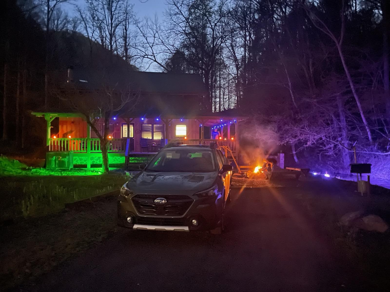 Bet you've never seen a CREEK light up before! Prepare yourself for an amazing lighting experience once dusk sets. A blue creek, torches outside, and amazing galaxy lighting upstairs.
