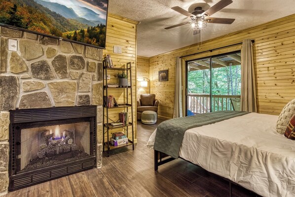 LIVING SPACE: 50" flat screen TV, electric year round fireplace, sleeper sofa, ceiling fan, board games, great books, and extra blankets.