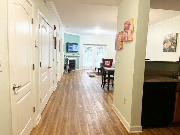 This property offers a convenient and versatile option for families or groups traveling together. The unique combination of a bottom floor 2-bedroom and 1-bedroom unit (without an adjoining door) right next door to each other provides privacy while still being close enough to feel connected. Here`s a breakdown of the key features: