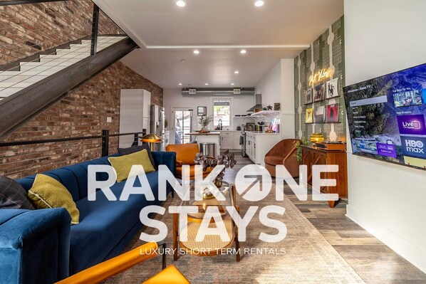 Rank One Stays presents Pitt Vibes. Two king suites with private baths, off-street parking for two, Pac-Man arcade, fire pit with string lights, and a balcony retreat just minutes from breweries, restaurants, sporting events, and downtown nightlife.