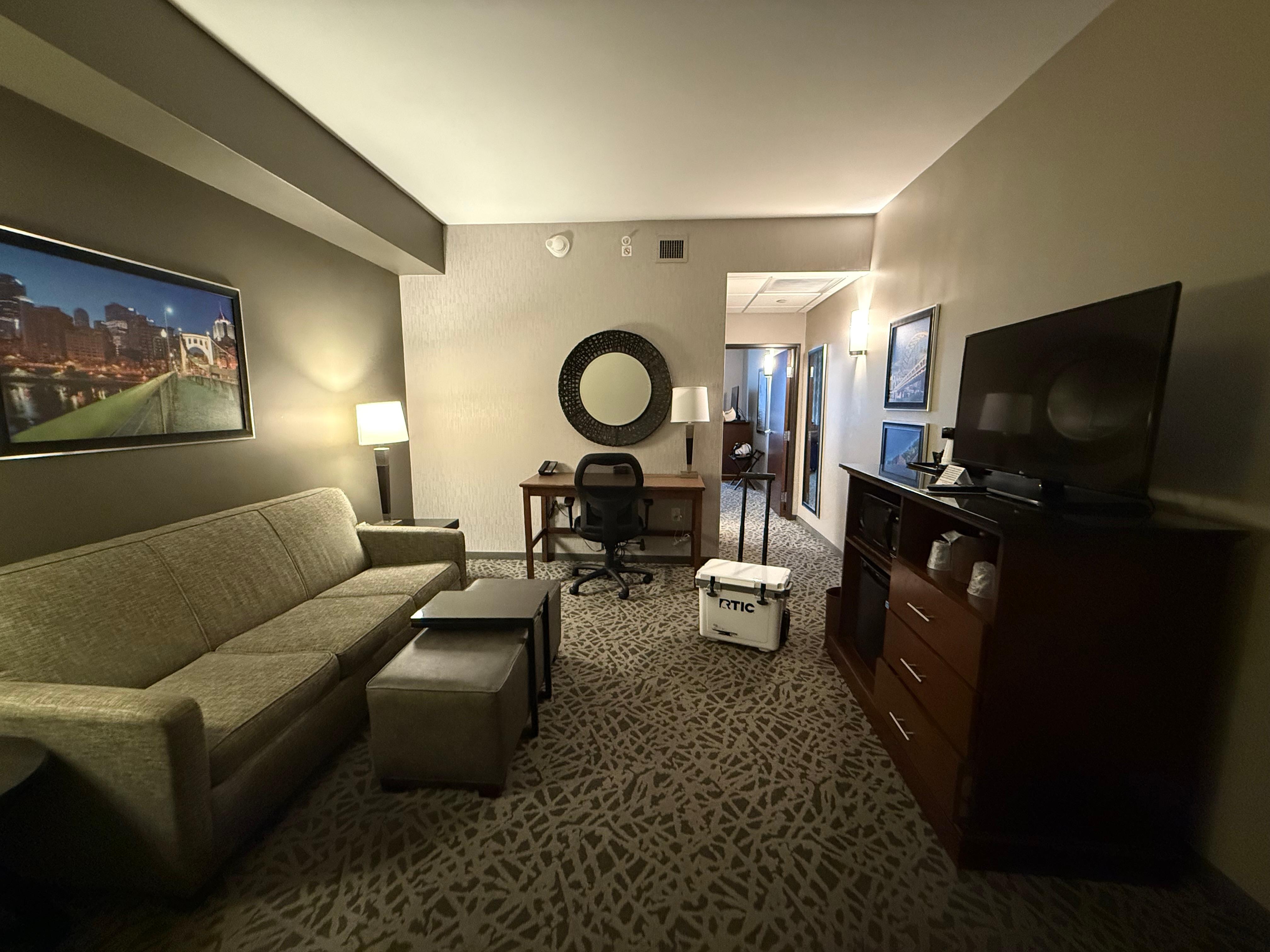 Per 2. apr. 2026 har vi funnet en startpris på 1 318 kr, inkludert skatter og avgifter, for én natt for 2 voksne på Drury Inn & Suites Pittsburgh Airport Settlers Ridge den 6. apr. 2026. Prisen er basert på den laveste prisen per natt funnet i løpet av de siste 24 timene for opphold i løpet av de neste 30 dagene. Prisene kan endre seg. Velg datoer for å se mer nøyaktige priser.
