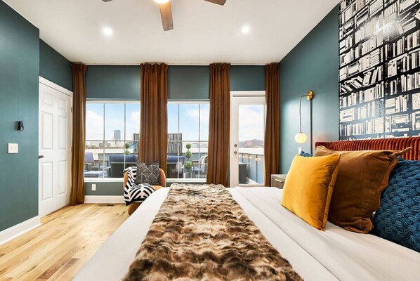✓ Chore-Free Checkout® – So easy, it’s trademarked! ✓ Keyless Entry – Yale Smart Lock with unique guest code ✓ Spacious 3BR / 3.5BA Home – Each bedroom features a private ensuite full bath ✓ Private Top-Floor Primary Suite – Entire floor with panoramic skyline views ✓ Rooftop Deck with Firepit + Lounge Seating – Unwind under the city lights ✓ Fast Wi-Fi – 300 Mbps Verizon FiOS internet ✓ Fully Stocked Kitchen – Electric stove, oven, blender, dishwasher, and filtered water ✓ Premium Coffee Setup – Cuisinart Drip coffee maker, French press, Burr grinder ✓ Blackout Curtains + Ceiling Fans – Found in bedrooms for comfort ✓ Laundry In-Unit – Stackable washer & dryer in primary suite closet ✓ Street Parking – Free and easy street parking ✓ Entertainment – Roku Smart TVs, Alexa smart speaker ✓ Family Friendly – High chair, pack & play, baby gates, children’s dinnerware ✓ Eco Comforts – Dropps detergent, sustainable cleaning products