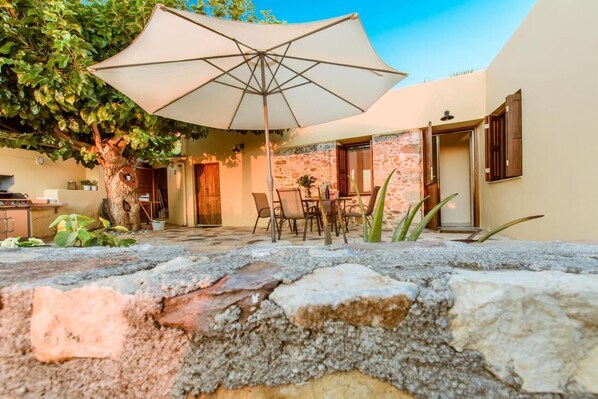 Feriebolig med kjøkken og peis i Platanias