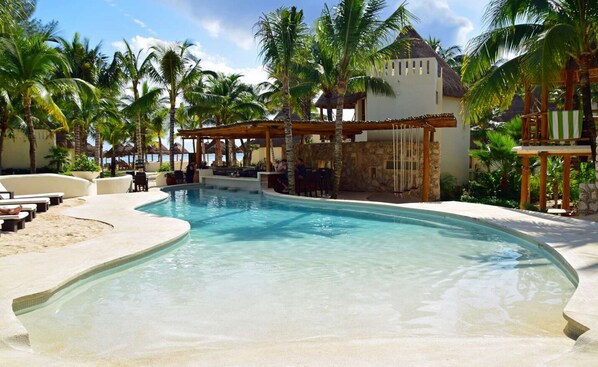 Overnattingssted på stranden med boblebad i gangavstand fra Playa del Carmen hovedstrand
