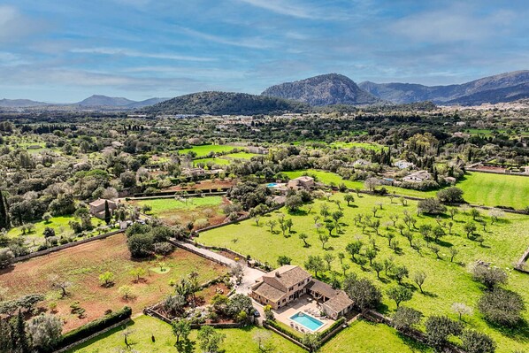 Villa Prital is accessed via a picturesque private road that leads to this impressive stone country house with 4 bedrooms and 3 bathrooms, located on an extensive plot that combines rural charm with proximity to the most attractive places on the island. Situated between the historic city of Pollença and the crystalline coves of Cala San Vicente, the villa offers an unbeatable location.