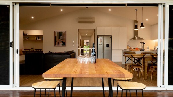 With four large bedrooms equipped with built-in robes, reverse cycle air-conditioning and ceiling fans, this subtle mansion can sleep 13 people in ultimate comfort. Two ensuites, an enormous main bathroom and a separate toilet means queuing for facilities is simply not a concern.