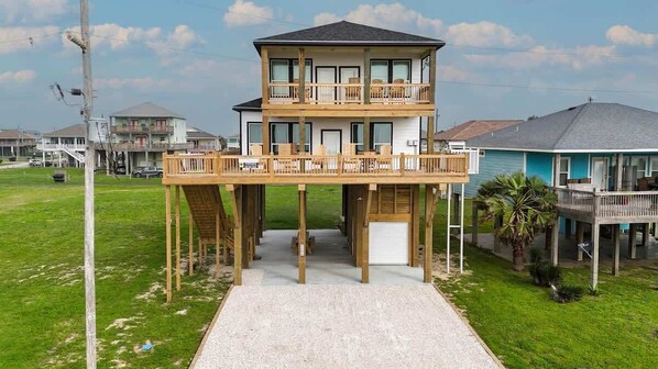 This house and its location were perfect for our family gathering. We were a group of 9 young people, aged between 4 and 21, and 6 adults. There were enough sleeping places for everyone. The main area of the home is spacious and welcoming. I didn’t have to go through and childproof the place as I've had to do with other rentals. The house had toys and games for kids everywhere. Each room had a TV with streaming services ready for you to log into.During our stay, the entire Bolivar Peninsula experienced a power outage due to a crazy storm. Despite that, we still had a fantastic time, using the grill to cook and spending two nights without power.We had booked our family photos, and due to the weather, we had to use the living room for our pictures, which turned out great (even without power).We did use the linen package offered in addition to our stay, and while the rules around the provided linens were a bit strict, they weren't too crazy.Overall, we had an amazing time in a wonderful house. The location and the view of the beach from the patio were my favorite parts!