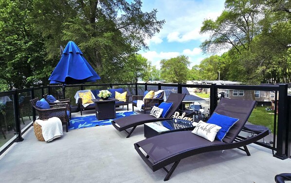 ✅ Rooftop patio with outdoor TV, BBQ and fireplace