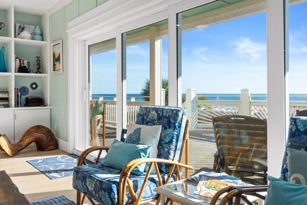 - Private Gulf front family room with deck access and expansive water views.