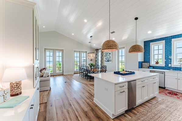 Kitchen - fully stocked, stand alone ice maker, large island with seating for 3, Keurig & drip coffee maker