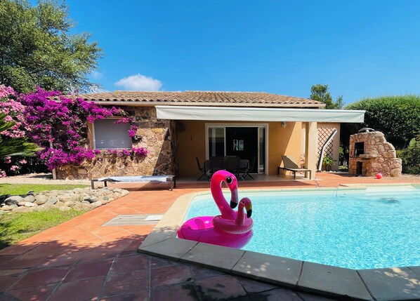 Denne ferieboligen med golfmuligheter ligger midt i hjertet av Porto-Vecchio og 5 kilometer unna Sør-Korsika-strender, Marina di Fiori-stranden og Korsikas regionale naturpark. Dessuten ligger Lille Cala Rossa-stranden og Cala Rossa-stranden kun 10 kilometer unna.