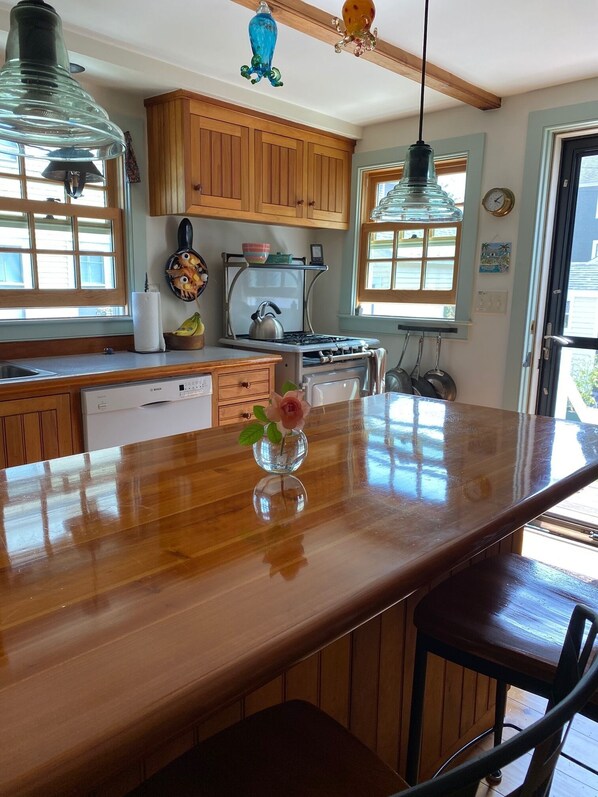 Den opprinnelige 12 "x 33" -delen var en "Fish House" i Strawbery Banke i det 18. århundre, og ble flyttet til sin nåværende plassering i 1820. Vi nøye doblet størrelsen på huset og samtidig opprettholde den karakter og integriteten til den opprinnelige bygningen. Alle døren maskinvare, spiker i gulvet styrene, frakk stativer, peis verktøy, gås hals og rekkverk ble laget av en lokal smed. De brede furu, hånd-hugget boards som kler ut stuen tilhørte vår byggmester oldefar. De gjenvunnet murstein i våre tradisjonelle Rumford peis er fra en lokal mølle bygning som ble rasert år siden. Alle vinduene er nye og tre. Du må finne en kamp å tenne brennerne på vår opprinnelige 1927 Glen komfyr ... ja det er ekte, og vi har brukt den til å tjene tusenvis av måltider til gjester gjennom årene. Mellom takvinduer og vinduer, og alle rom fylt med sol og lys selv på en overskyet dag. Gulvene er myke furu. Kjøkkenskap, kirsebær bar, shaker stil bord og stoler er alle håndlaget gir huset en svært varm og koselig følelse som minner om fortiden, men med en upbeat moderne stil. Hovedsoverommet møblene er håndlaget av kirsebær fra tidligere Pompanoosuc Mills samling og det andre soverommet er fra LLBean Cottage Collection. Puter og sengetøy er nye. Det er en full størrelse vaskerom ovenpå. Den ovenpå Badet har også en fantastisk tur i dusjen med Barber Wilson inventar og utmerket vanntrykk og også en klo fot badekar for boble bad med Epsom salter for å slappe av etter en stressende dag! Oppkjørselen plass til to biler og det er ekstra gratis parkering på tilstøtende hovedgaten.