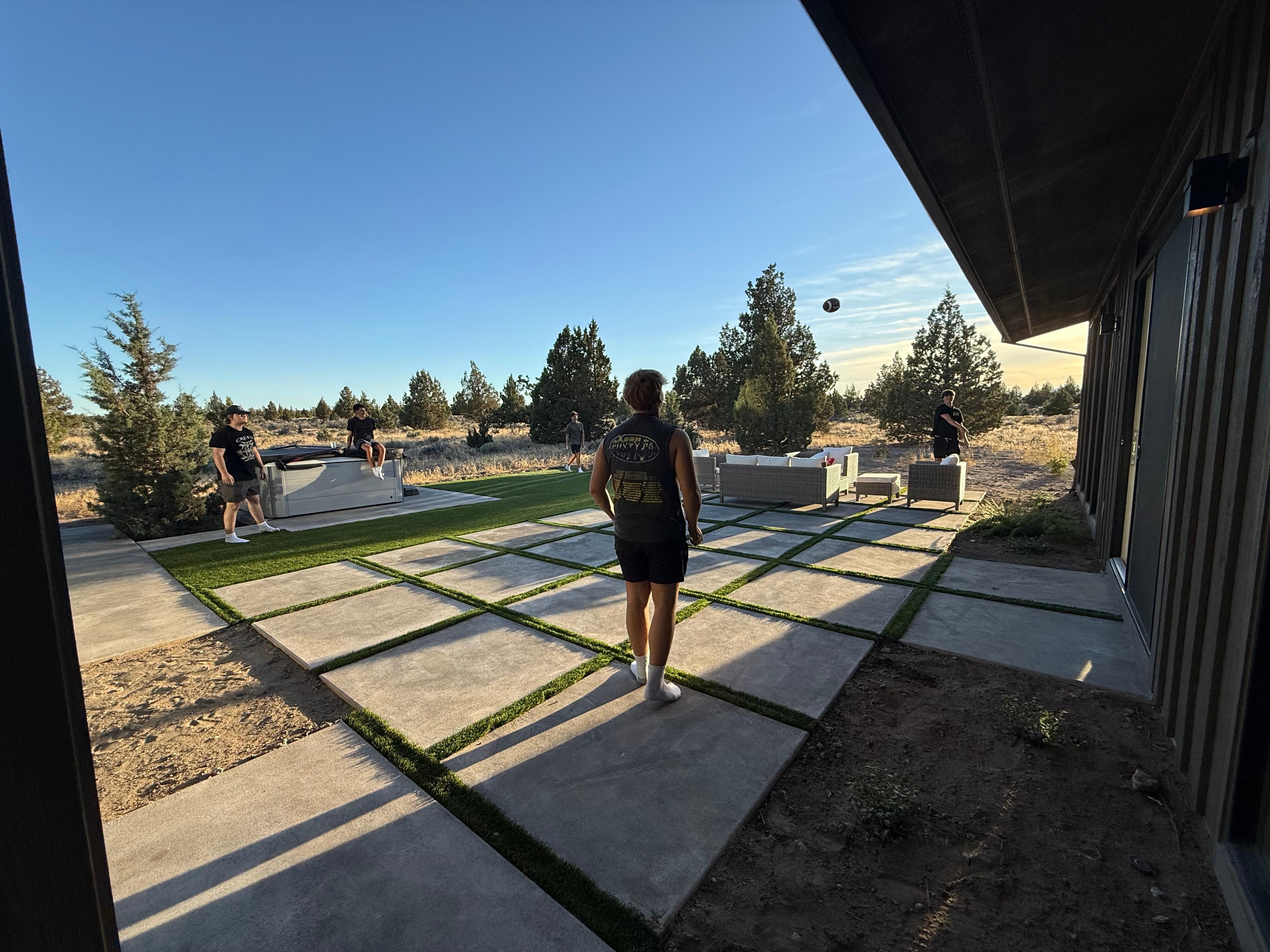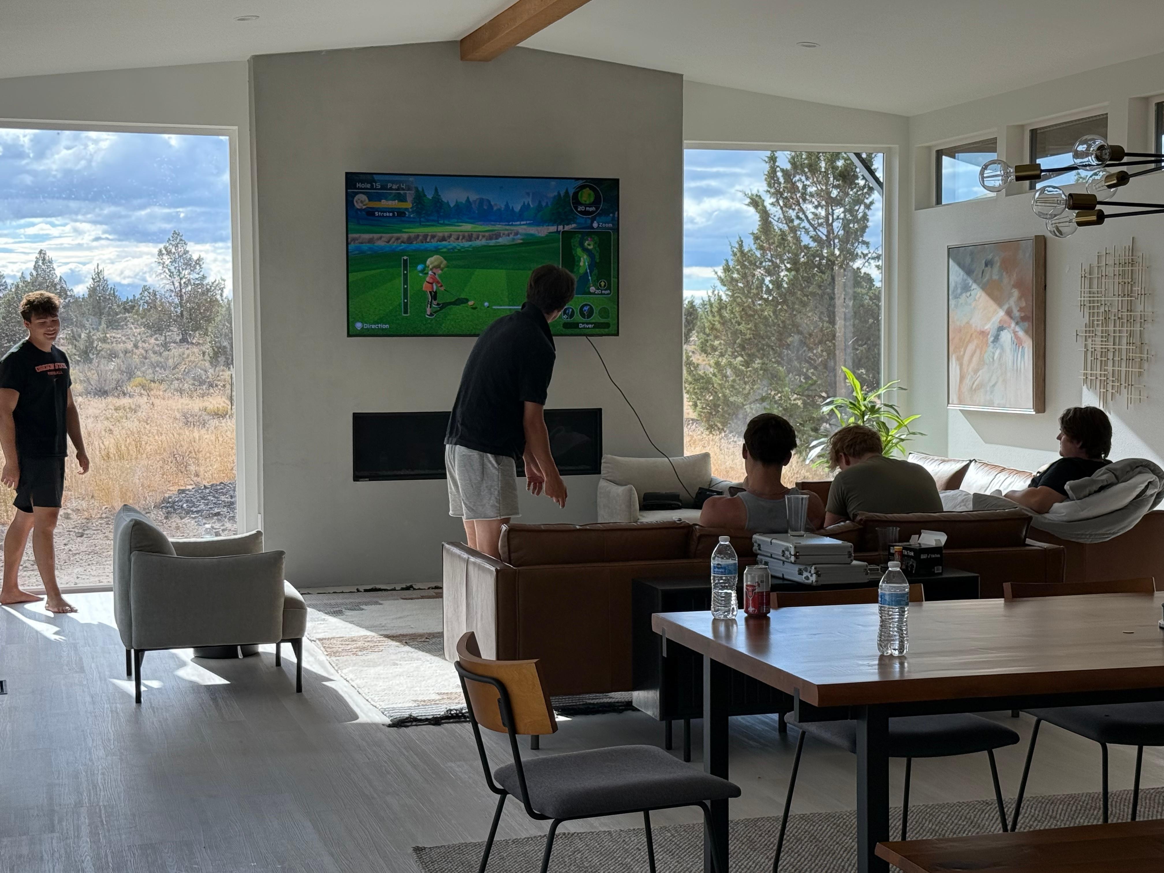 This house was absolutely stunning! It was right on the outside edge of the neighborhood, with tons of privacy! Clearly, a new build... Still smells of fresh paint! They were well stocked with detergent, paper towels, etc... It was clean and bright. We took our grown boys for a golf trip, and had an absolute blast! Back yard is perfect for hot tubbing and yard games. Fun upstairs deck to watch the sunset. I could go on and on about how lovely this home was!That being said, being such a new rental, there were just a few things missing that would be helpful, and I am sure they will rectify... There was no wine opener, so bring your own :). Also, a little tricky keeping the beautiful white floors clean. Would have loved to have a swifter or mop of some kind to help keep up on it. But honestly - amazing home and no complaints! Will 100% stay here again!