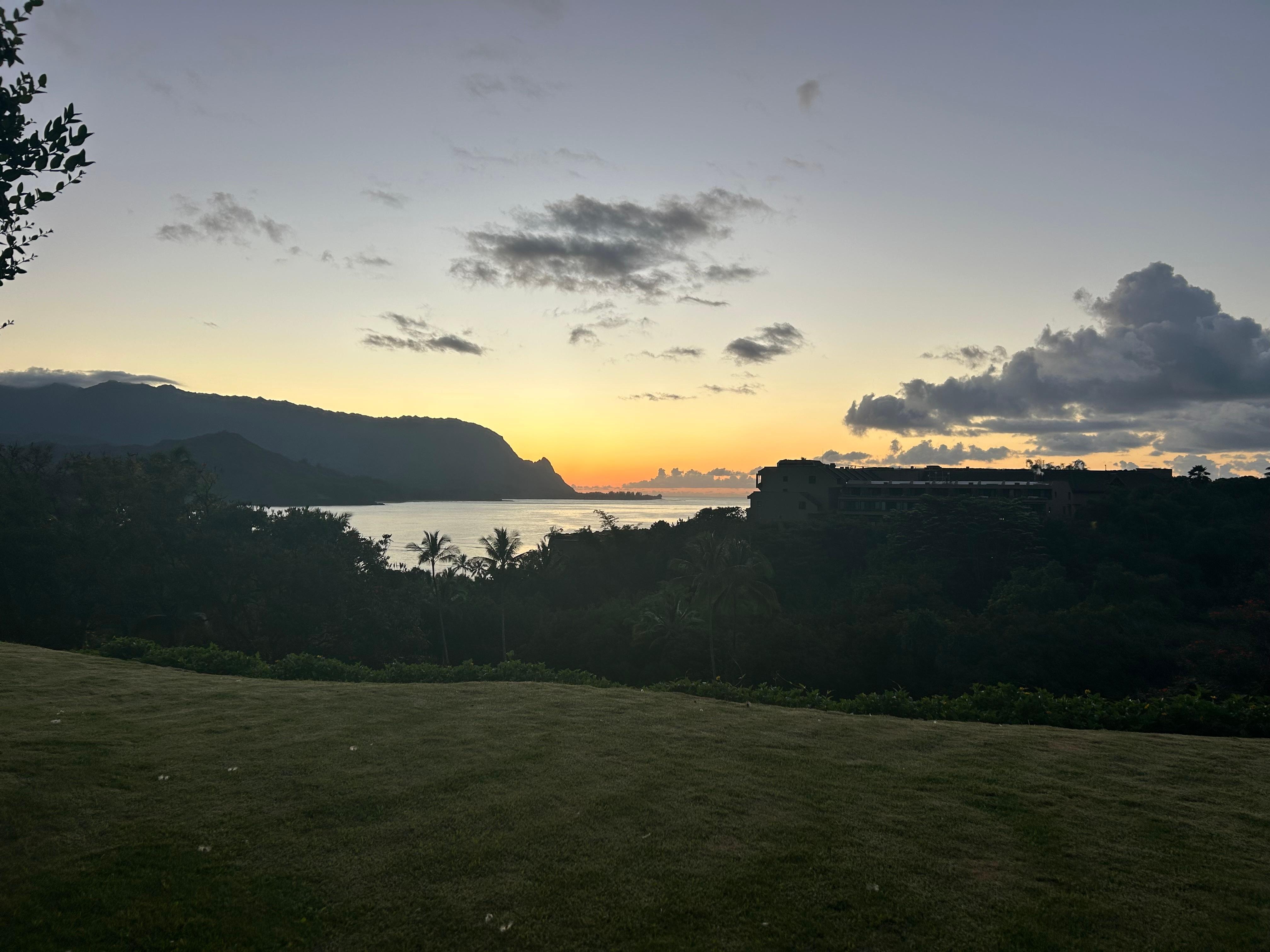 Beautiful views of sunsets and rainbows over Hanalei Bay.