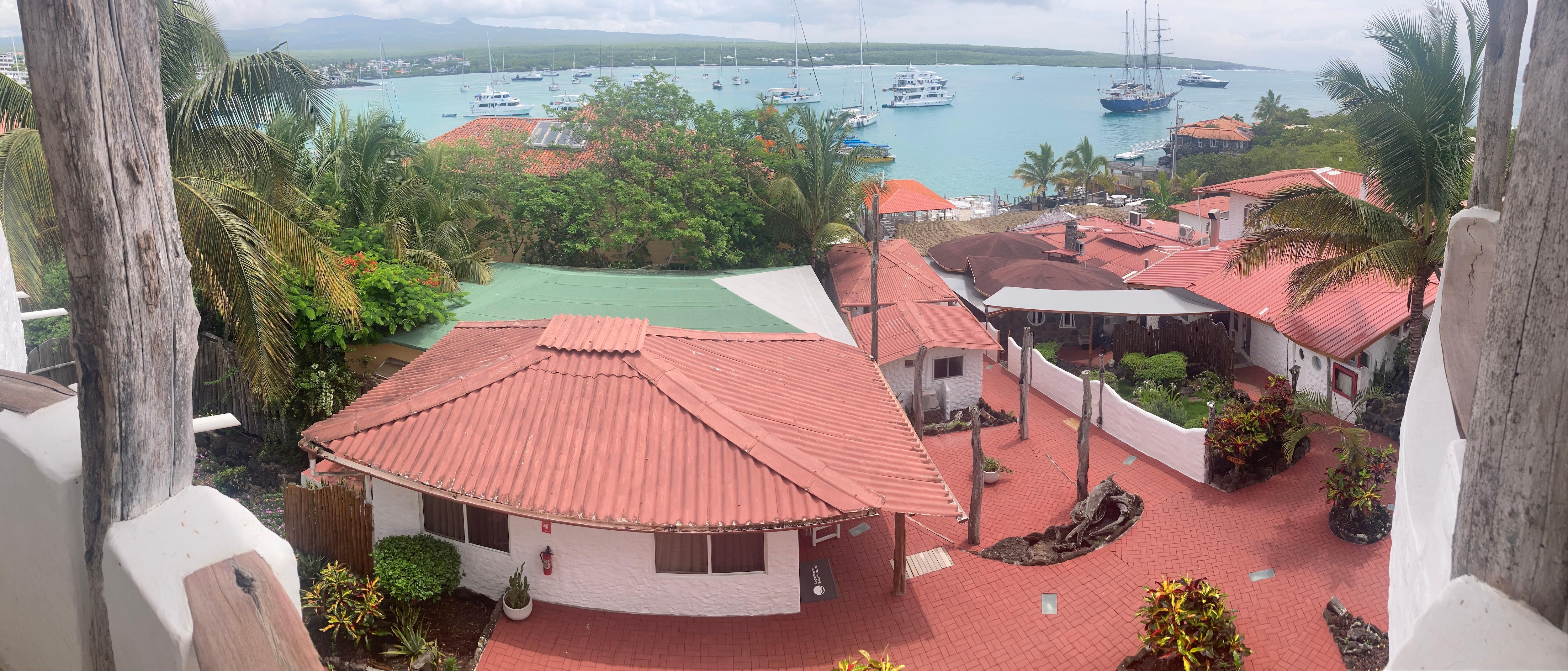 Lovely waterfront location to enjoy breakfast. The staff were welcoming and accomodating. You have to take a water taxi to and from the main pier of Santa Cruz which costs $1pp per way. The hotel area is quieter which is nice. Our room (Pelican) had issues when we flushed the toilet and used the tap the room would smell of sewage. There was also a lack of power outlets in the room. Food wise was very mediocre, breakfast was ok and dinner was average. The view is best thing about this hotel.
