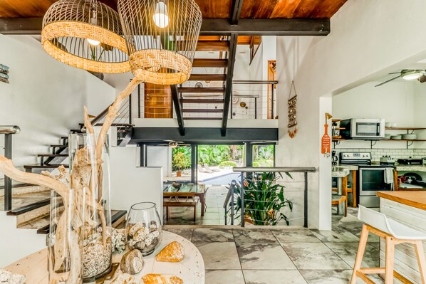 I cannot even begin to describe how wonderful our stay was here. This house is GORGEOUS — the pool, the high ceilings, the huge windows, it was all so lovely. We had a group of 11 people and we all fit very comfortably. The house is a short 10-minute walk to Playa Carrillo, which we loved more than the beach in Sámara: it’s a long, peaceful stretch of sand with gentle waves and lots of palm trees for shade. There are a handful of restaurants and little grocery stores within walking distance of the house for anything you might need. And of course, Sámara is a short drive away if you want more variety. But I’ve saved the best for last — María, our host, was the most wonderful part of our stay. There was no request too small or too large for her and her husband to help us with, no matter the time of day. They warmly welcomed us, cooked multiple meals for us, provided recommendations for anything we wanted to do (surfing, horseback riding, massages, you name it), cleaned the pool every day, and helped us navigate a flat tire situation. We joked that we wanted to take María with us on the rest of our trip. Stay here, you will love it!!