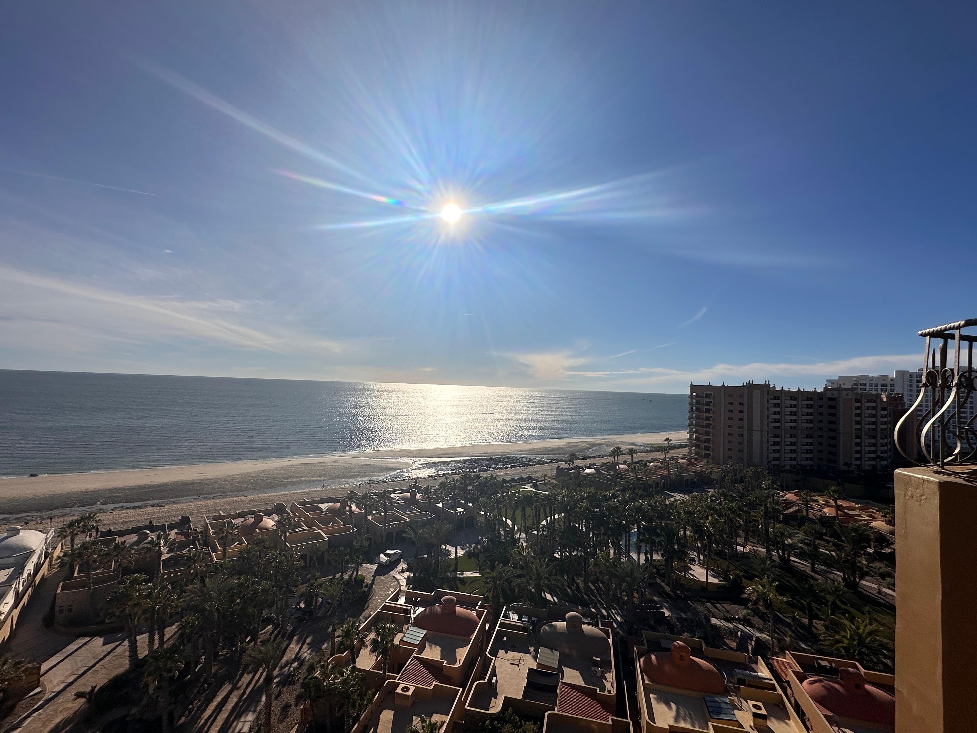 The bottom level has the full gourmet kitchen, spacious dining and living room, two bedrooms, two full bathrooms and a large balcony overlooking the Beautiful blue Sea of Cortez.