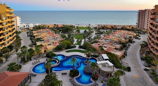 Bella Sirena is the nicest beach front resort in Rocky Point with swimming pools, hot tubs, lush grounds, waterfalls and a heated swim-up pool bar. Also an excellent fitness center, BBQ areas, and restaurant/bar.