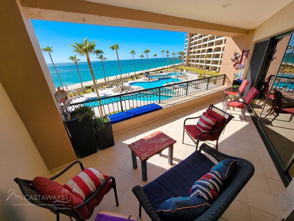 Virkelig vakker 2 soverom 2 bad leilighet har en belegg på 4 voksne og 2 barn i det luksuriøse Sonoran Spa Resort på Sandy Beach. Her finner du alt du trenger for din hyggelig ferie, pent innredet og innredet. Vakkert kjøkken. Hyggelig spisestue og stue med flatskjerm-TV og utsikt ut mot havet gjennom de store doble glassdørene. Stort soverom med tilgang til uteplass. Separat dusj med 100% bomulls håndklær. Utmerket havutsikt over frodige fellesarealbasseng fra terrassen.