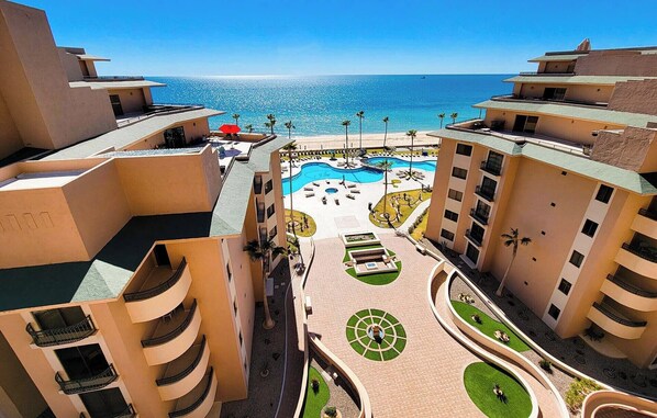 Virkelig vakker ett soverom ett bad leilighet har en occupancy av 2 voksne og 2 barn i det luksuriøse Sonoran Spa Resort på Sandy Beach. Her finner du alt du trenger for din hyggelig ferie, pent innredet og innredet. Vakkert kjøkken. Hyggelig spisestue og stue med flatskjerm-TV og utsikt ut mot havet gjennom de store doble glassdørene. Stort soverom med tilgang til uteplass. Separat dusj med 100% bomulls håndklær. Utmerket havutsikt over frodige fellesarealbasseng fra terrassen.