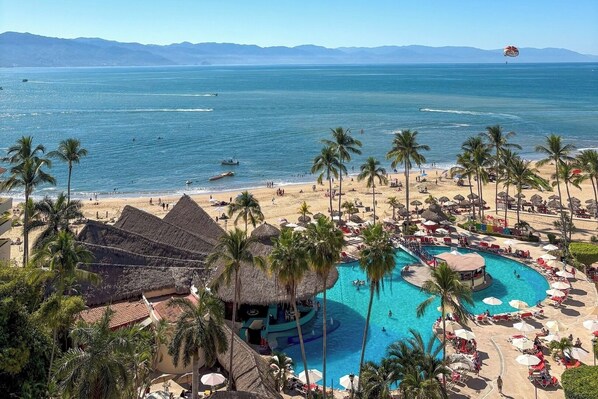 - Pool, lounge chairs (subject to availability), towels, and direct beach access are included.
