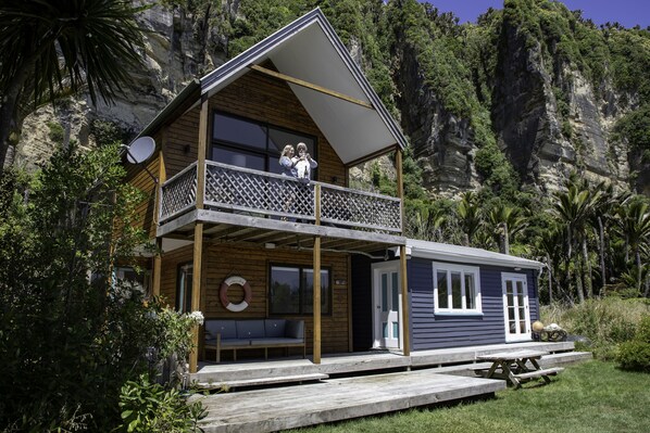 Vårt oppholdsrom har rikelig med plass til å slappe av og nyte ettermiddagssolen over Tasmanhavet, eller ute på balkongen med grillfest. Stuen har også en TV med DVD-spiller og et utvalg av DVDer å velge mellom, flere kan også bli funnet på Punakaiki Beach Camp-kontoret. Sky TV inkludert.